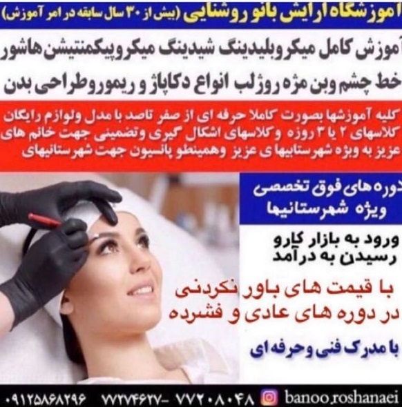 مرکز آموزش هاشور ابرو ,خط لب ,خط چشم ,با دستگاه میکرو پیکمنتیشن و میکروبلدینگ , فیبروز بولد بروز , فشن بروز و انواع شیدینگ و ریمو ور کردن ودکاپاژ کردن با مدرک فنی و حرفه ای و بین المللی