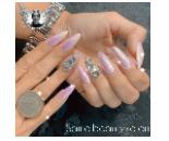 مدل ناخن شیشه‌ای: استفاده از لاک ناخن شفاف یا رنگ روشن برای ایجاد ظاهری شبیه شیشه، همراه با تزییناتی مانند نگین و فویل .