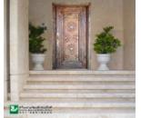 درب چوبی ورودی هتل ، آپارتمان و ساختمان سنتی گره چینی صنایع چوب ساج مدل T12B چوبی و فلزی