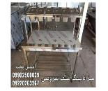 میز کار استیل سلف سرویس طرح تاپینگ پیتزا فست فود به صورت چرخ دار و دارای رف شیشه ای به همراه پیشخوان استیل طراحی می شود.