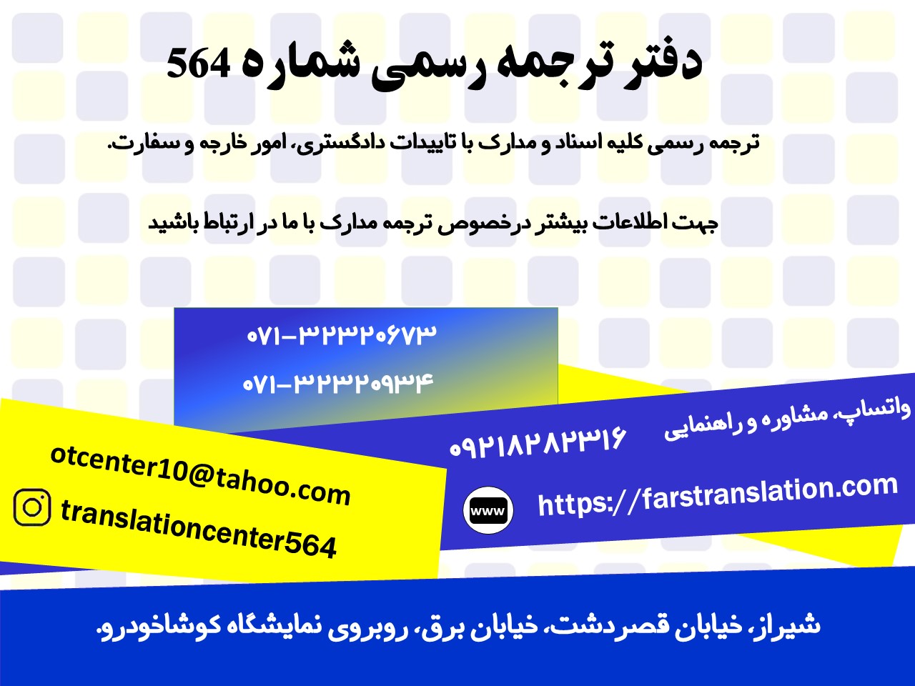 جهت اطلاع بیشتر از خدمات دفتر و ترجمه تماس حاصل فرمایید یا در واتساپ پیام بگذارید.