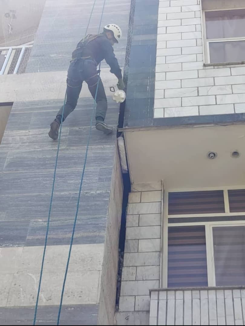 و به جهت اینکه یک طرف پاسیو در پشت ساختمان است استفاده از داربست کار را دشوار می کند