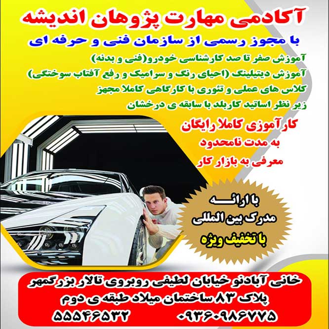 آموزش كارشناسی خودرو صفر تا صد (فنی و بدنه) و آموزش دیتیلینگ خودرو